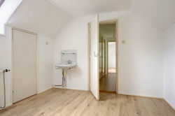 Op de verdieping bevinden zich naast de overloop nog 2 slaapkamers met toegang tot veel bergruimte naast de slaapkamers, een toiletruimte, een bergkast en stookruimte.