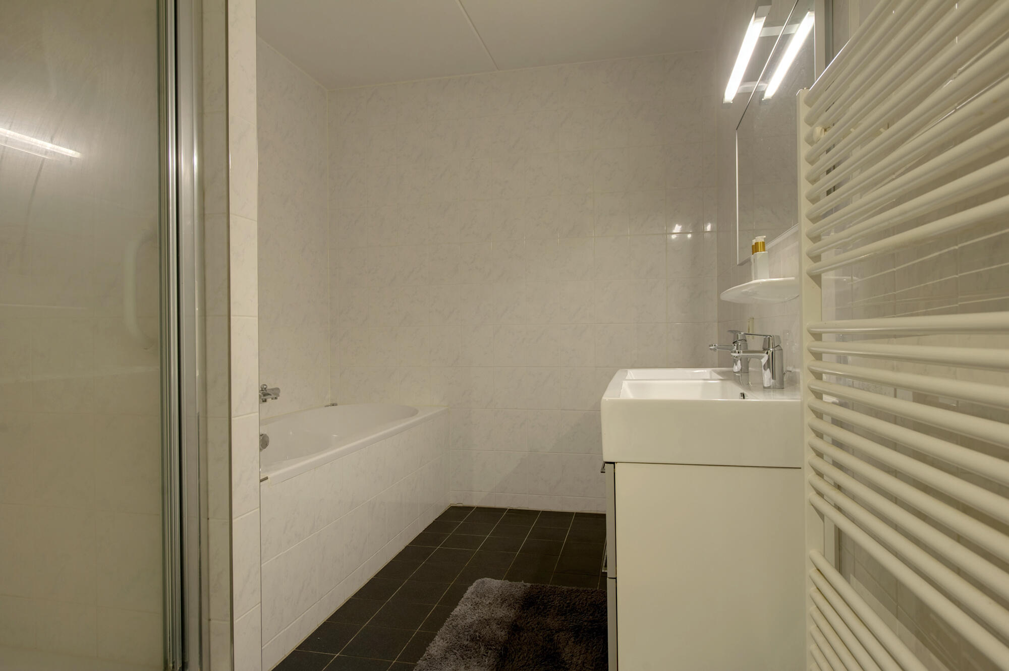 Het appartement beschikt over 2 slaapkamers (resp. ca. 9 m² en ca. 13 m²). De badkamer (ca. 7 m²) is volledig uitgerust met een ligbad, douche en een wastafelmeubel.