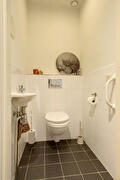 Binnenkomst in de hal, die toegang biedt tot vrijwel alle vertrekken. Direct bij binnenkomst bevindt zich de bijkeuken met witgoedaansluitingen en extra bergruimte. Daarnaast is er een separaat toilet.