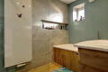 Vanuit de keuken is er toegang tot de ruime bijkeuken (voorzien van een achteruitgang en cv-opstelling). Aangrenzend bevinden zich het toilet en de badkamer (ca. 6.5 m², en geplaatst in 2024), die is uitgevoerd met een inloopdouche, ligbad en wastafelmeubel.