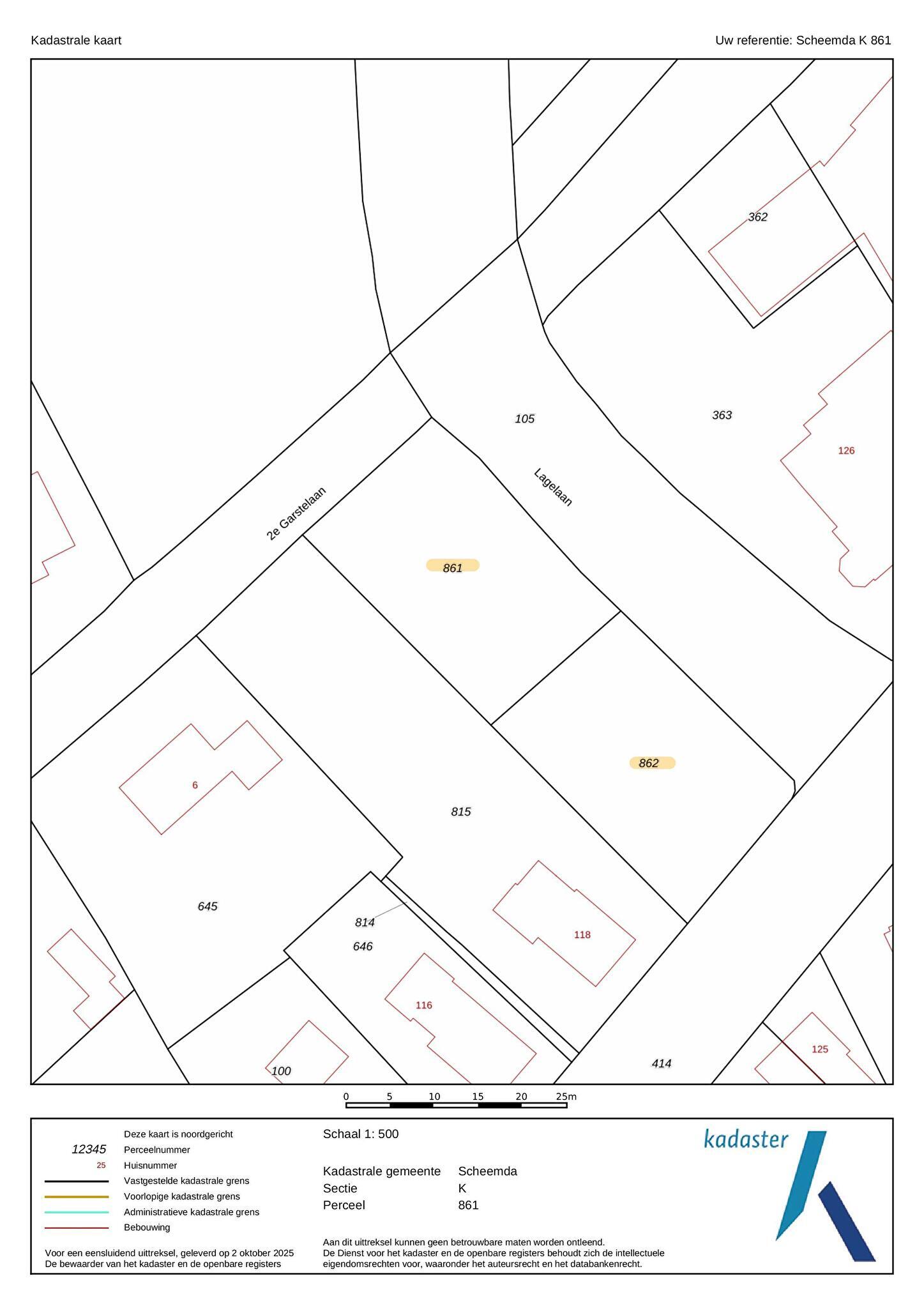 Kavel 2e Garstelaan, kadastraal bekend Scheemda, K 861, perceelgrootte totaal 609 m²: